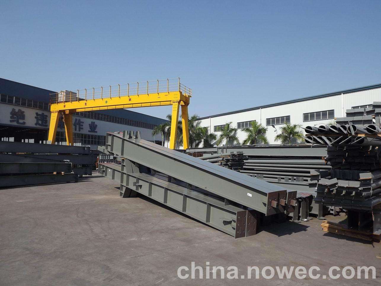 条状单元一般沿长跨方向分割,其宽度约为1~3个网格,其长度为l2或l2/2(l2为短跨跨距)。块状单元一般沿山东网架平面纵横向分割成矩形或正方形单元。每个单元的重量以现有起重机能胜任为准。条(块)与条(块)之间可以直接拼装,也可空一网格在高空拼装。由于条(块)状单元是在地面拼装,因而高空作业量较高空散装法大为减少,拼装支架也减少很多,又能充分利用现有起重设备,故较经济。这种安装方法适用于分割后网架的钢度和受力状况改变较小的各类中小型网架,如两向正交正放四角锥、正放抽空四角锥等网架。